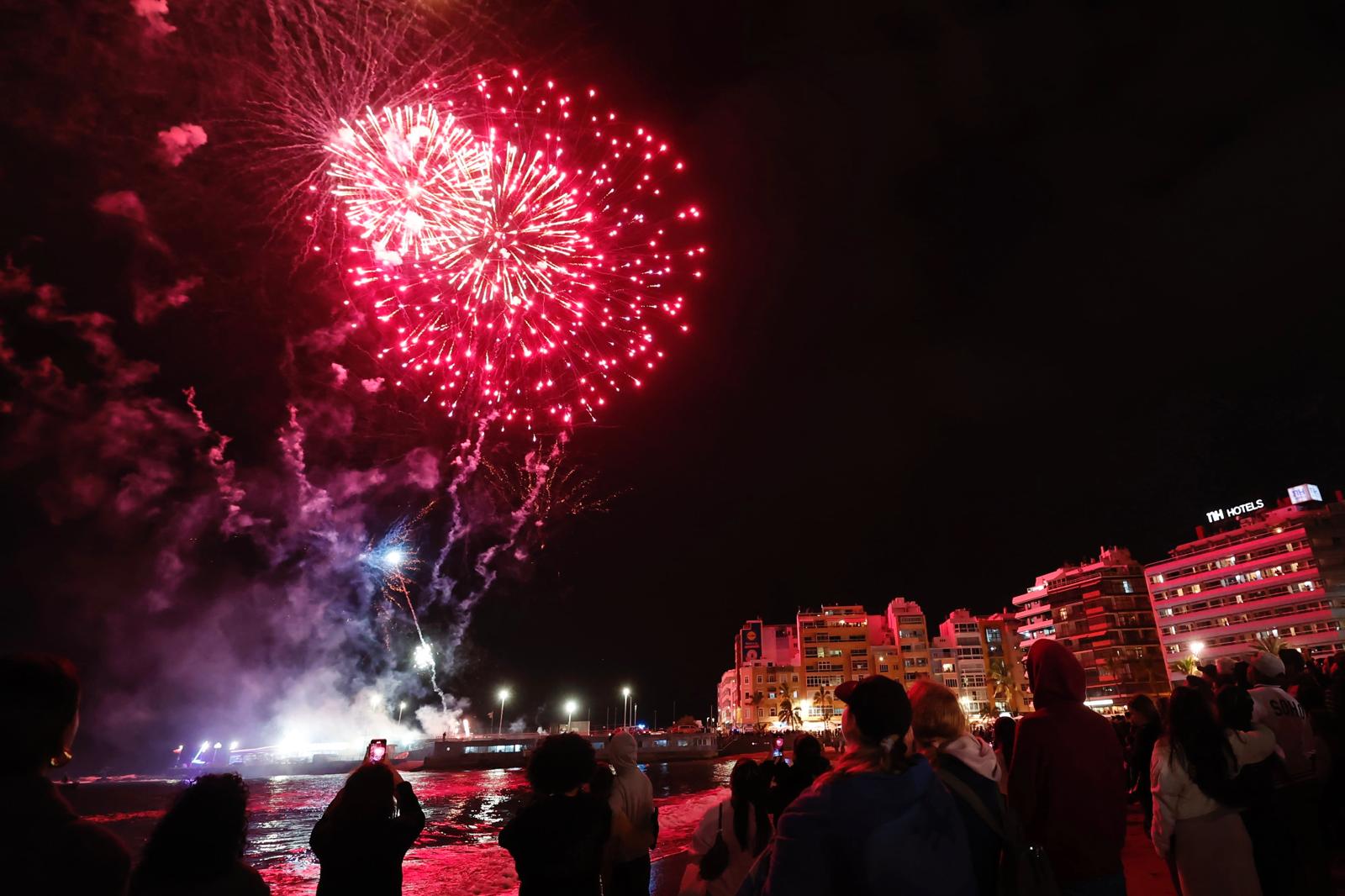 Las Palmas de Gran Canaria, domingo 1 de marzo de 2026. El Carnaval de «Las Vegas» concluye con su último espectáculo, el Entierro de la Sardina. Mientras los neones del «Hotel LPGC Palace» se apagaban en el parque Santa Catalina este domingo 1 de marzo, el cielo de la playa de Las Canteras se iluminaba con los fuegos artificiales para despedir una edición en la que la ciudad ha festejado el 50 cumpleaños de las carnestolendas y que en 2027 volverá para reencontrarse con todos los carnavaleros y carnavaleras bajo la alegoría de la «Música».