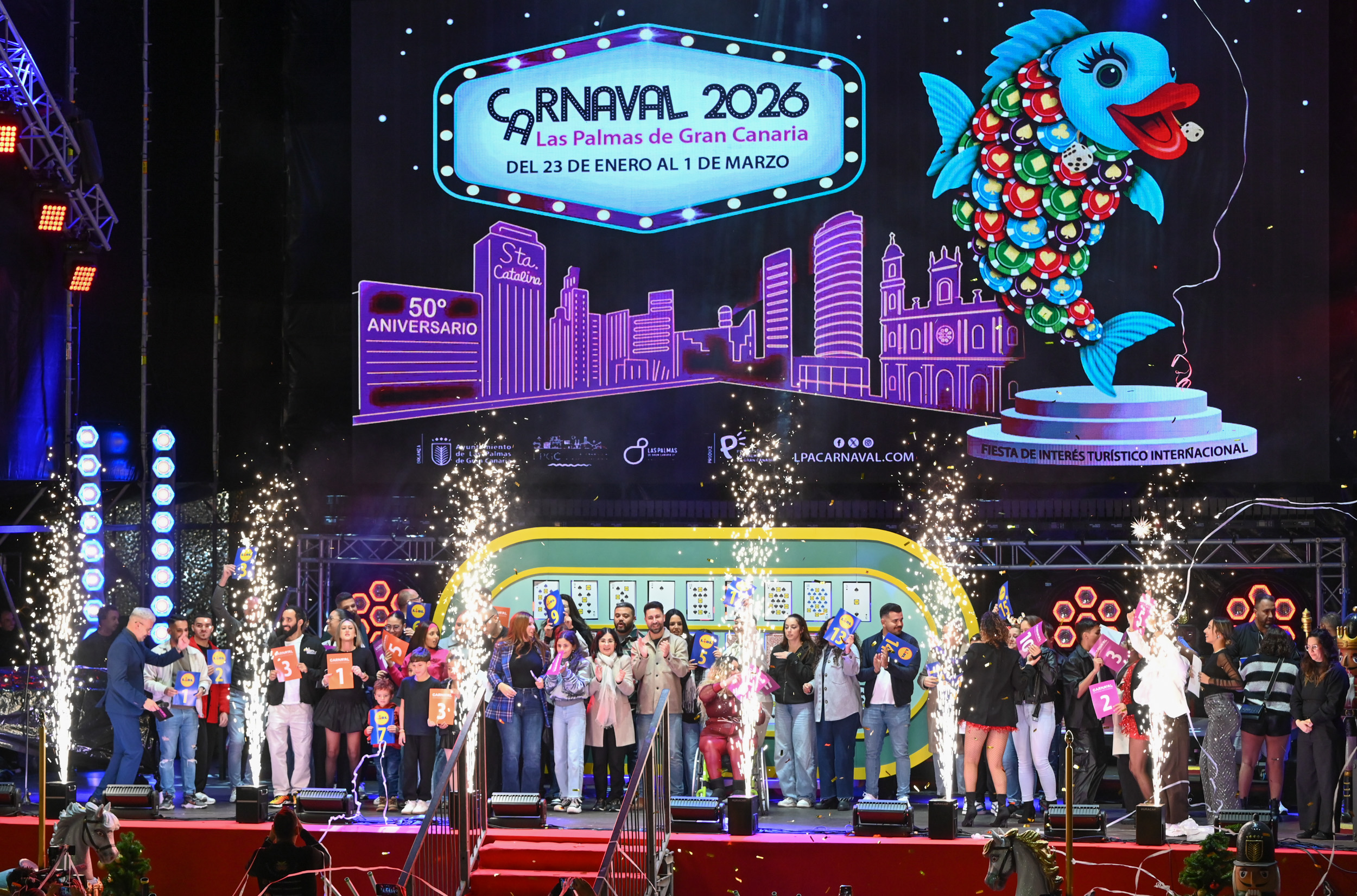 El Carnaval de Las Palmas de Gran Canaria se celebrará en 2026 del 23 de enero al 1 de marzo bajo la alegoría de «Las Vegas», una especial edición que conmemorará medio siglo de historia de la mayor fiesta multitudinaria, abierta y cosmopolita de la ciudad. Por tal motivo, el área de Carnaval del Ayuntamiento ha lanzado esta promoción exterior, fuera del ámbito nacional, que comienza este 5 de diciembre en Múnich y en Londres. En estas dos ciudades europeas, en donde durante un mes soportes de publicidad exterior digital, además de en el interior de importantes edificios, proyectarán un vídeo que recoge imágenes de las carnestolendas y de los ganadores de la corte carnavalera de la pasada edición.