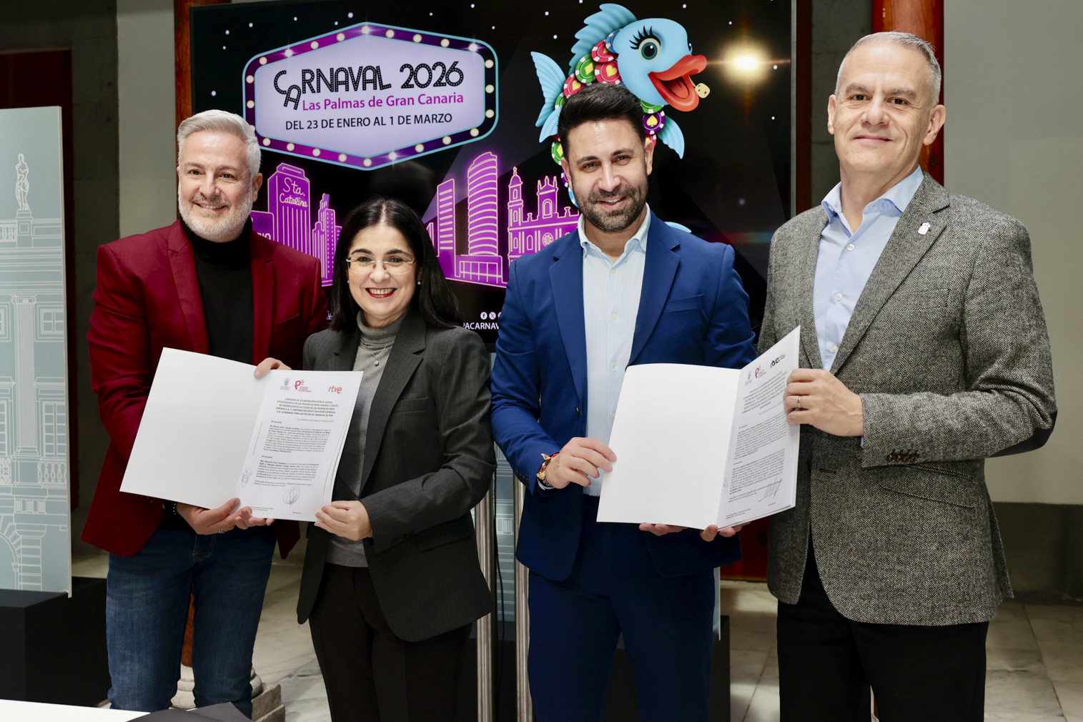 La firma del acuerdo alcanzado en las Casas Consistoriales estuvo representada por la alcaldesa de la ciudad, Carolina Darias, quien acudió a la cita acompañada de la concejal de Carnaval, Héctor Alemán, así como por los representantes de ambas cadenas el administrador general de Radio Televisión Canaria, César Toledo, y el presentador de TVE, Roberto Herrera.