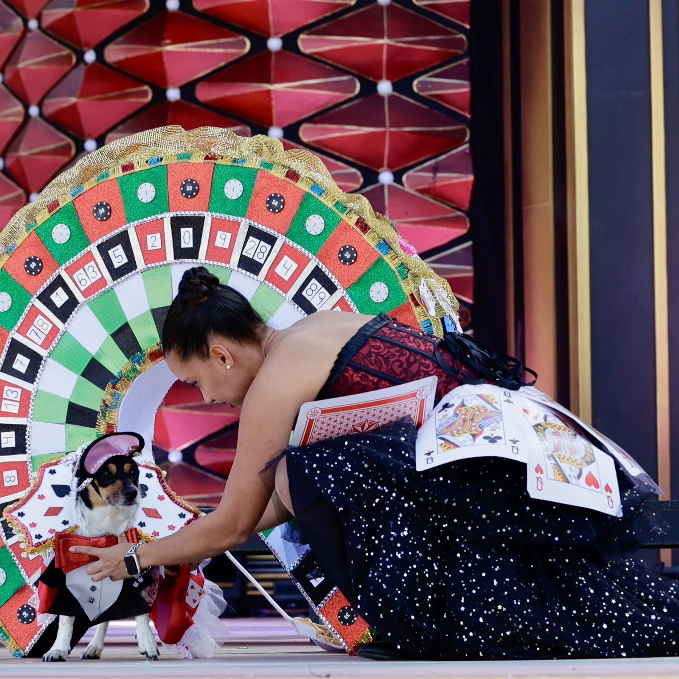 Arepa se convirtió en la mascota del Carnaval de «Las Vegas» con la fantasía «¡Pero qué perra la tragaperra!». La mestiza, desde su primera participación en el Carnaval canino de 2024 junto con su compañera Rosmi Quesada, no se ha bajado del podio donde se alzó como ganadora esa misma edición, haciéndose también con un tercer puesto en 2025.