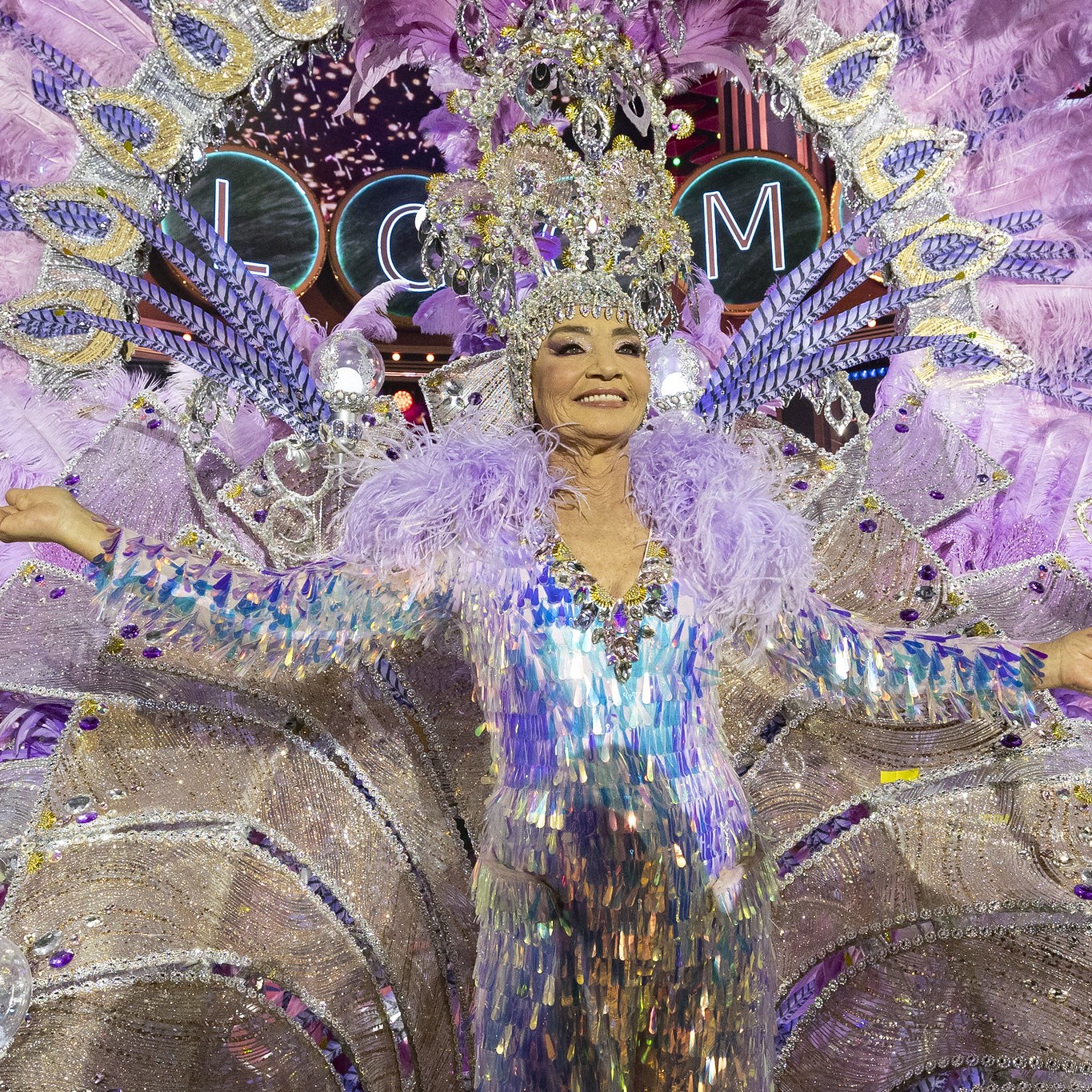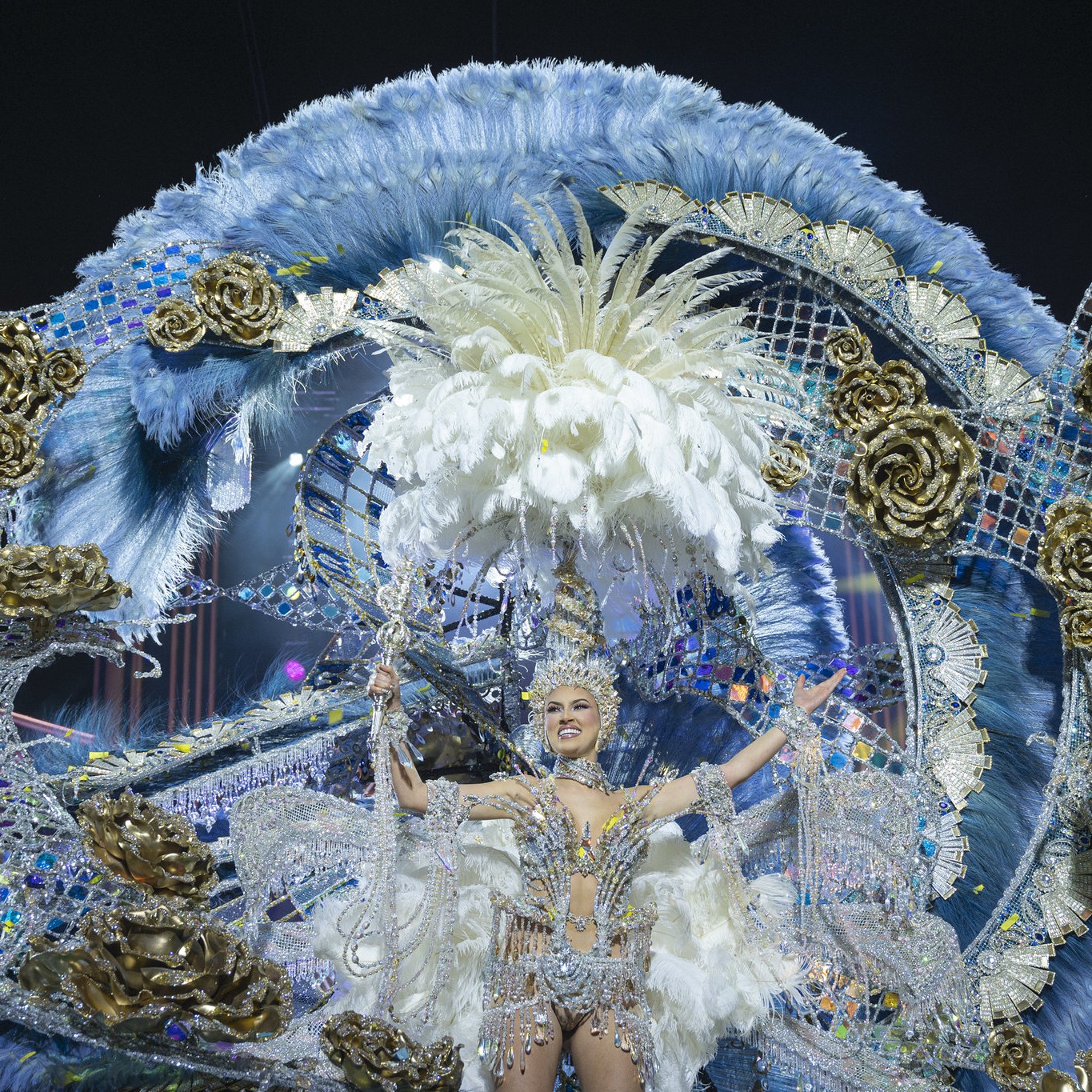 Carla Benítez González con el diseño «Historia» de Kevin Rodríguez González para Capross 2004 S.L. se convirtió en la 50.ª Reina del Carnaval de Las Palmas de Gran Canaria. Al recibir cetro y tiara, Carla, en un instante inolvidable, fue arropada por quienes, antes que ella, lucieron las joyas de la corona.