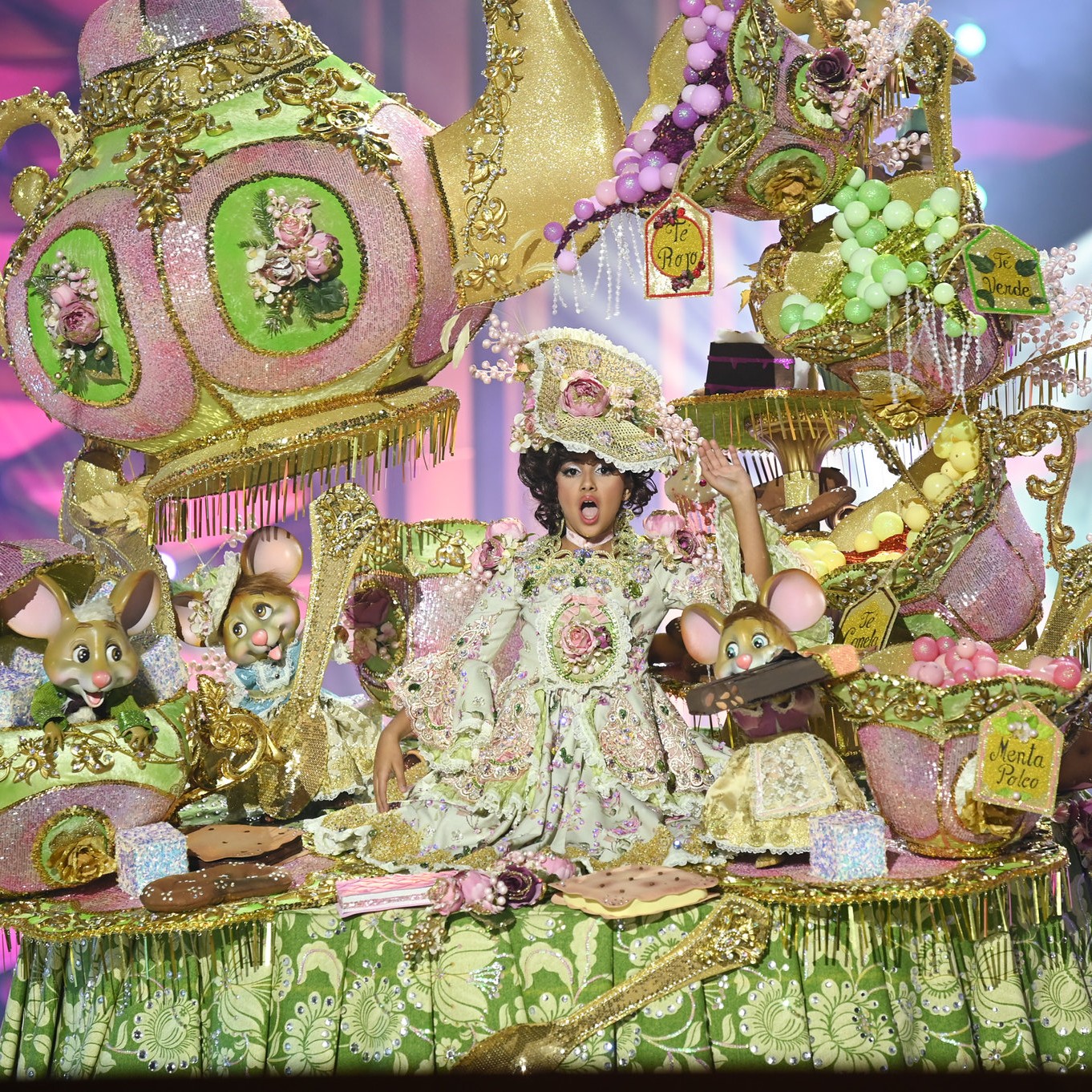 Elena Henríquez González con la fantasía «Té, estaba esperando», un trabajo de Masbe Creaciones para la Asociación Cultural Adasat, fue la primera en ascender al trono del Carnaval de «Las Vegas» coronándose Reina del Trono Infantil.