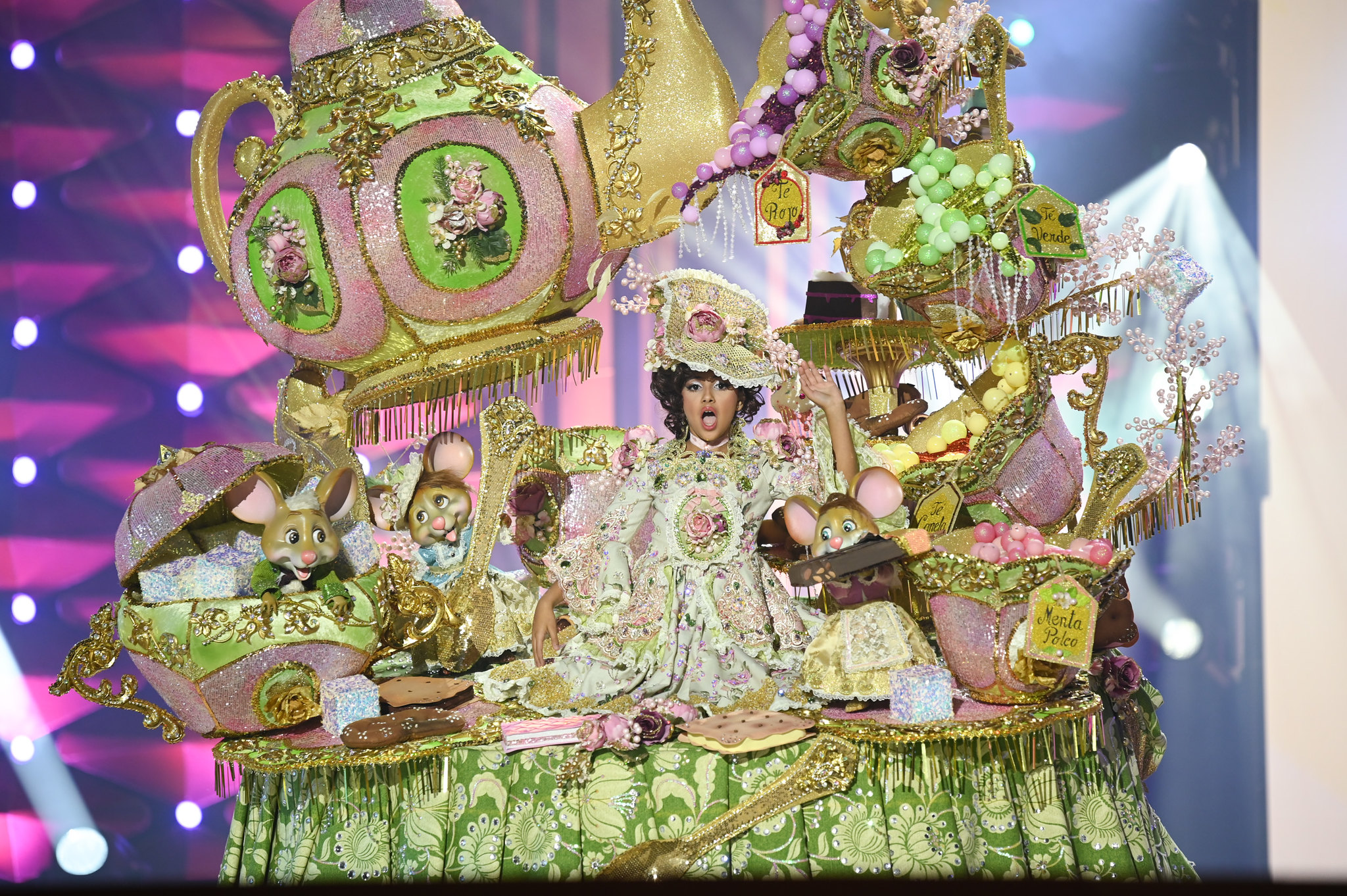 Elena Henríquez González con la fantasía «Té, estaba esperando», un trabajo de Masbe Creaciones para la Asociación Cultural Adasat, fue la primera en ascender al trono del Carnaval de «Las Vegas» coronándose Reina del Trono Infantil.